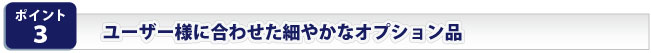 ユーザー様の用途に合わせたオプション品の組み合わせや特別仕様など、細かなニーズにお応えします。 |